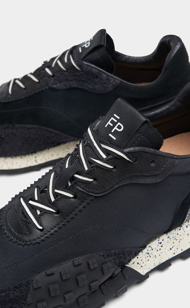 Our footwear design frontrunner is back with a premium nylon upper, mixed with suede, Nappa and brushed leather details. Inspired by 70s era running shoes, the Crease Runner has a recognizable wrap-around rubber outsole, open tongue and zigzag eyestays for a retro look.