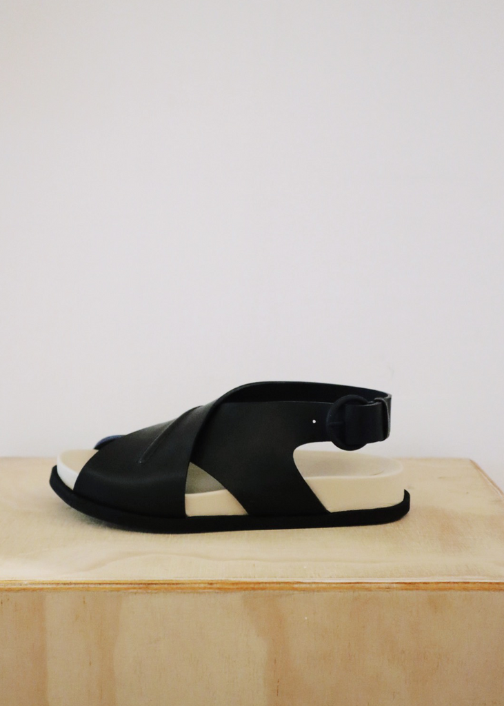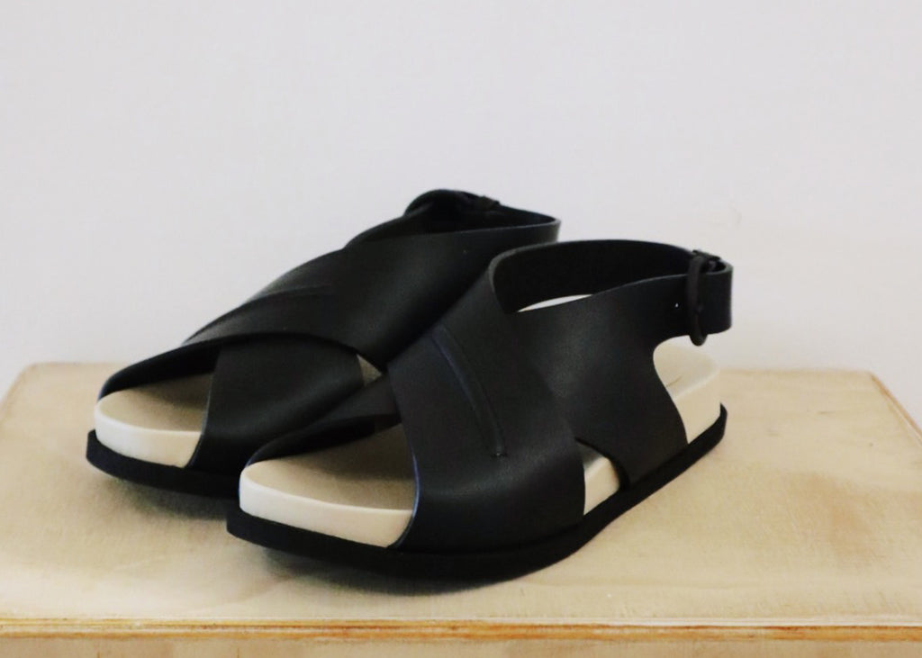 The slingbacks with their crossover straps in nappa leather sit on a moulded fussbet and rest on a texturized light outsole material.