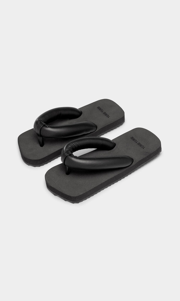These sandals are inspired by the iconic Japanese Geta shape. Its traditional wood has been replaced with high-quality EVA foam. The upper is made from Italian vegan leather